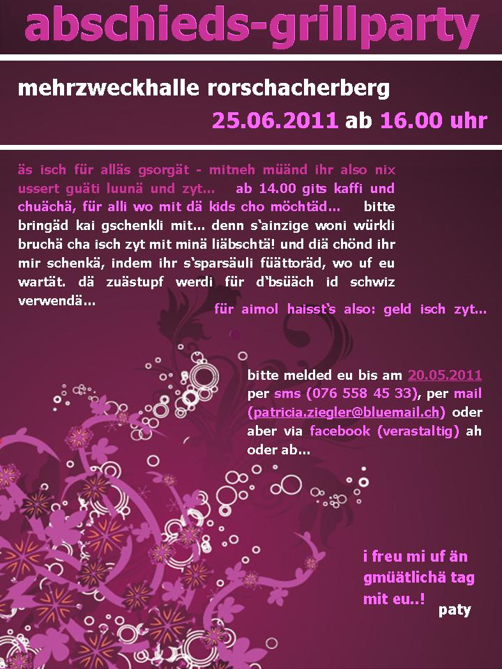 Wiä jo di maischtä bereits wüssäd findäd am 25.06.2011 mis Abschieds-Grillfest statt. I freu mi uf än